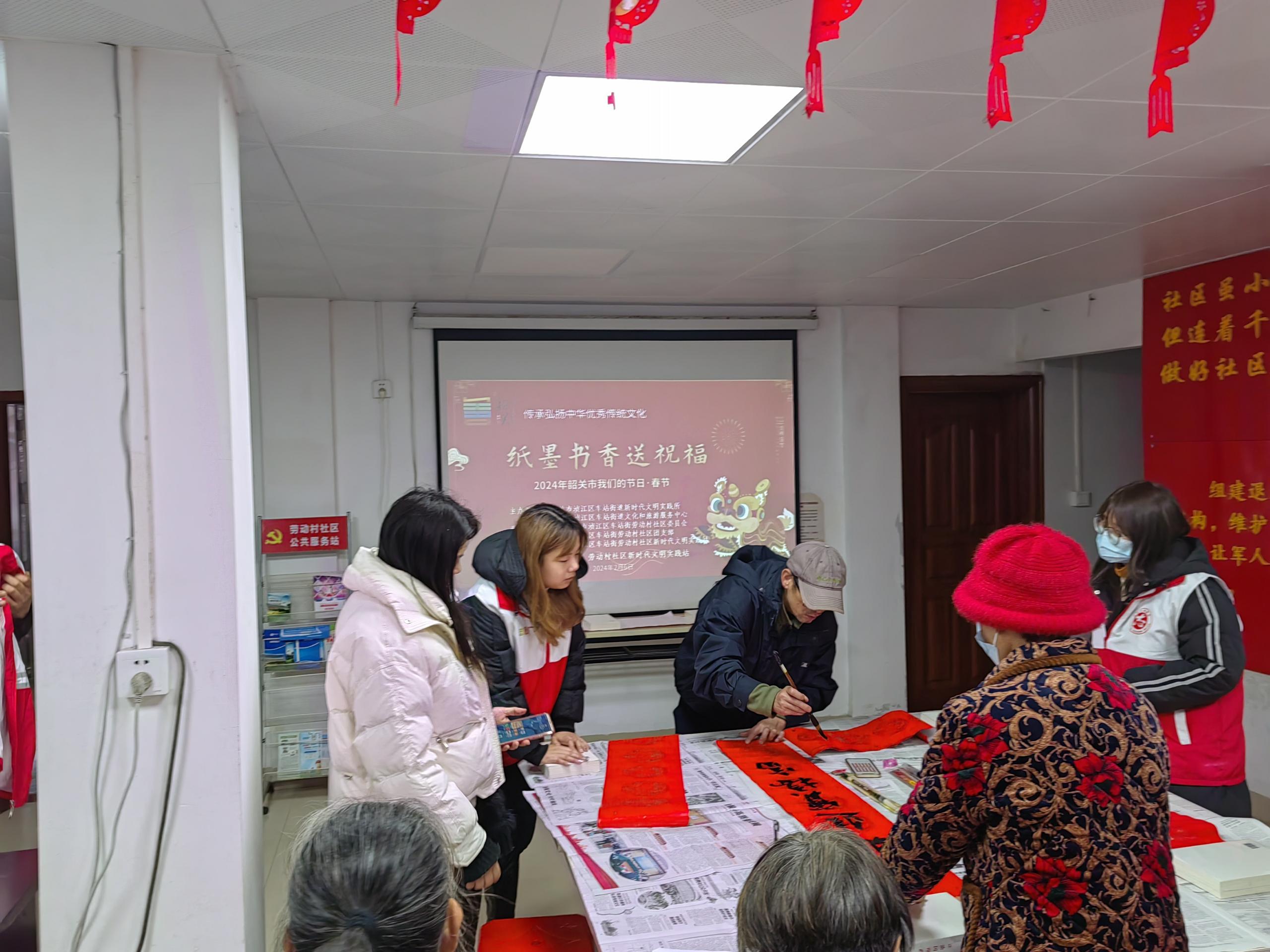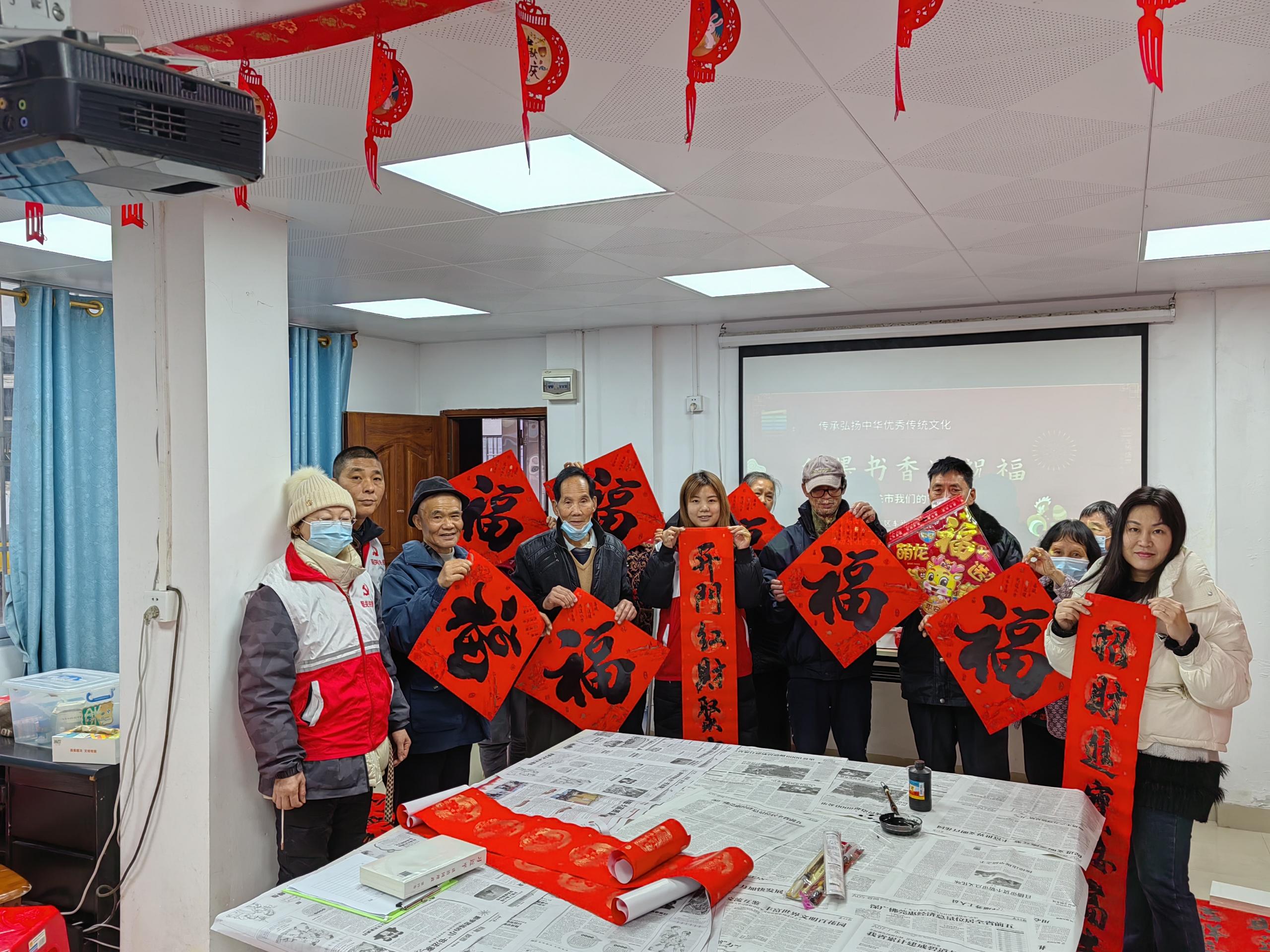 一幅幅对联、一个个透着喜庆的“福”字铺满了活动室,让大家切身感受到春节的临近及逐渐浓郁起来的年味。此次活动不仅营造了浓厚的书法艺术氛围,给社区居民送上了美好的节日祝福,而且让居民在品味传统文化习俗的同时,增进了和谐的邻里情谊,提升了居民的获得感与幸福感。