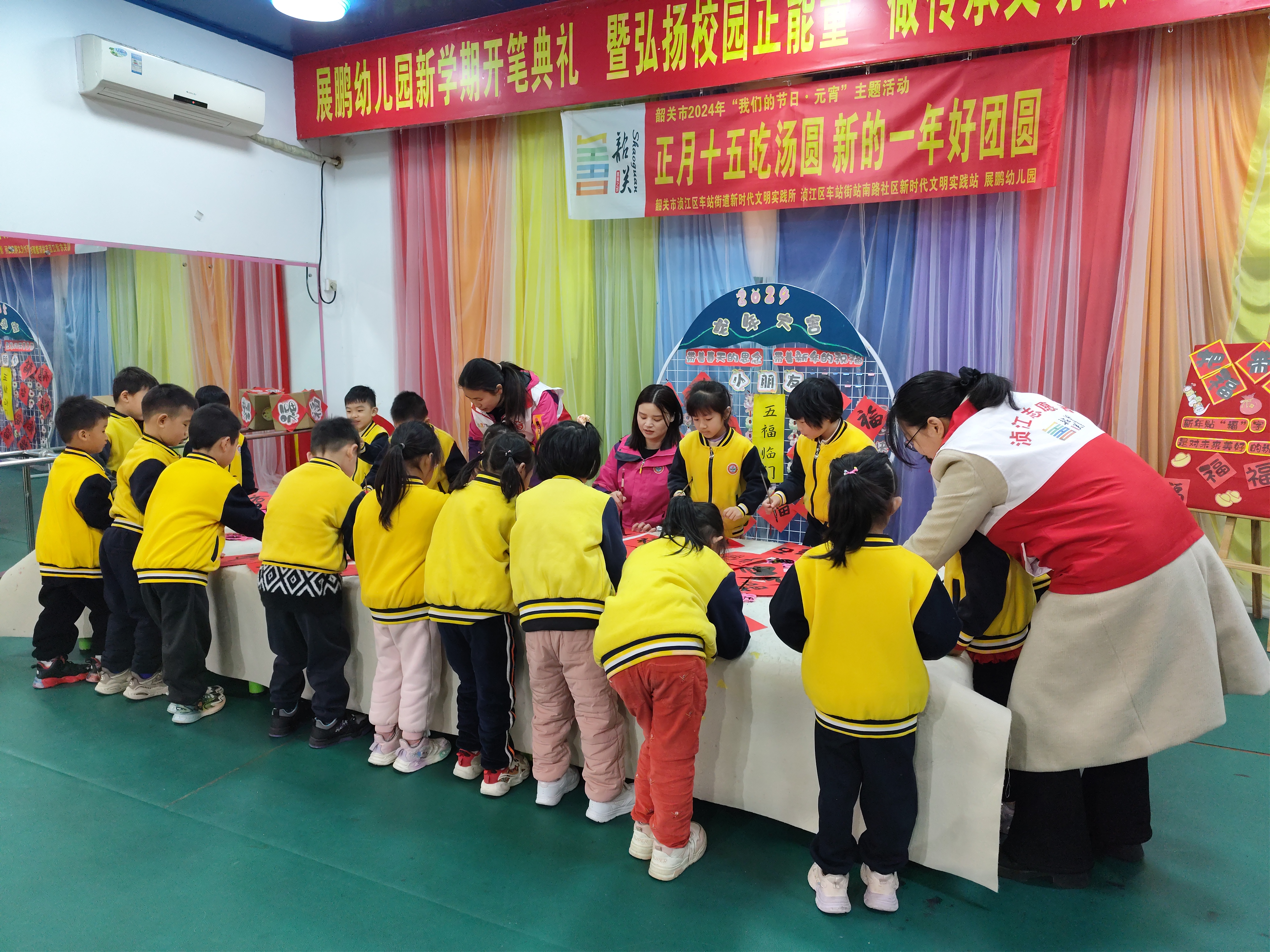 为丰富辖区小朋友的课余生活,培养孩子们的创新和实践能力,站南路社区联合展鹏幼儿园开展了一场“闹元宵”活动。活动当天,骤降的气温并没有阻挡孩子们的热情,小朋友们积极报名参与,志愿者们和孩子一起参加挂彩灯、纸杯翻翻、吃元宵、滚汤圆、写福字等游园活动,小朋友们发挥想象力给自己的花灯增添色彩,学习模仿着搓出圆滚滚的汤圆,大声唱着《卖汤圆》表达对自己制作手工汤圆的快乐和自豪,活动室里流动着浓郁的传统文化气息。